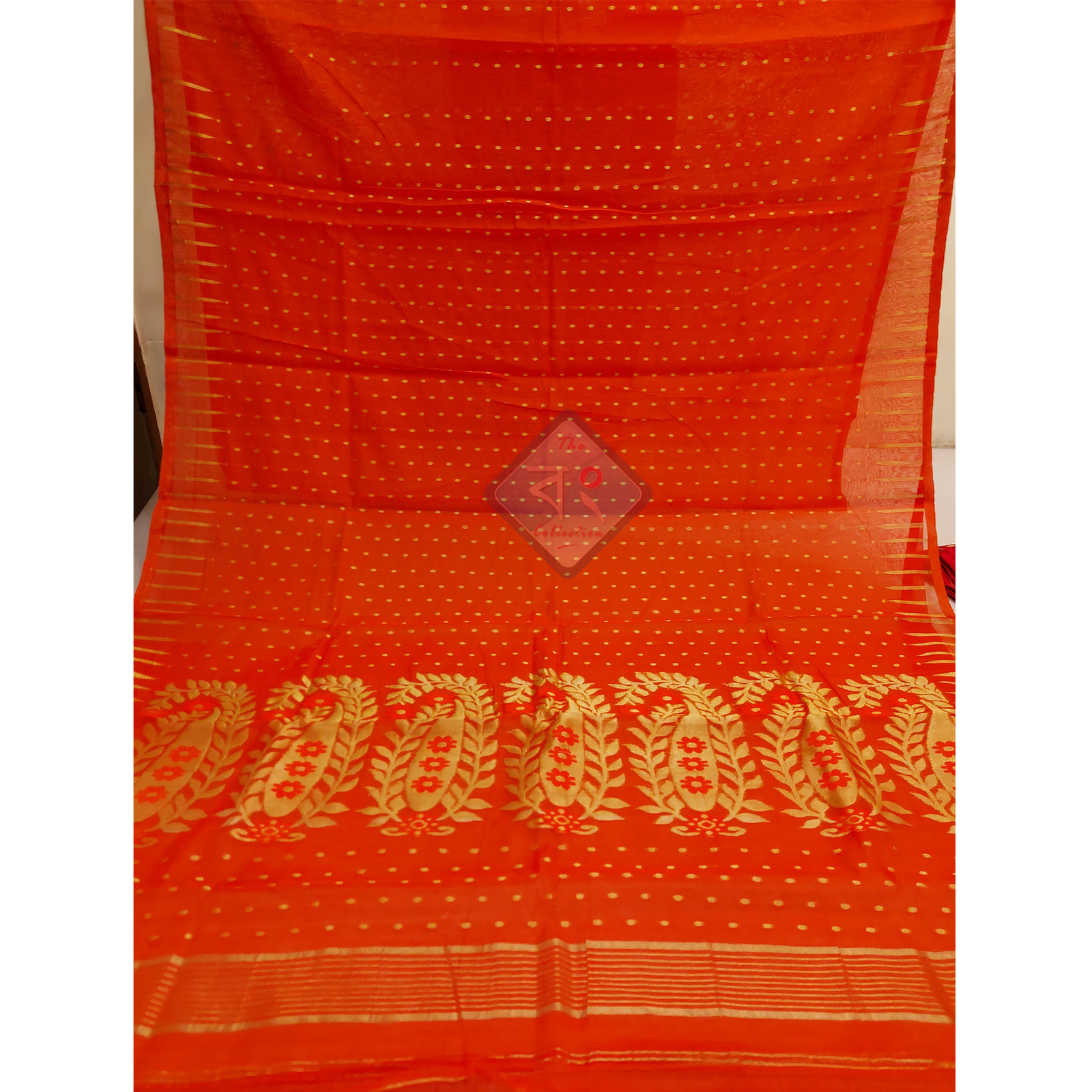 Bengal most loved traditional dhakai jamdani sarees with allover zari boota. The saree has a gorgeous look because of its nicely finished zari work. Suitable for any occasion. No blouse piece attached with this saree.